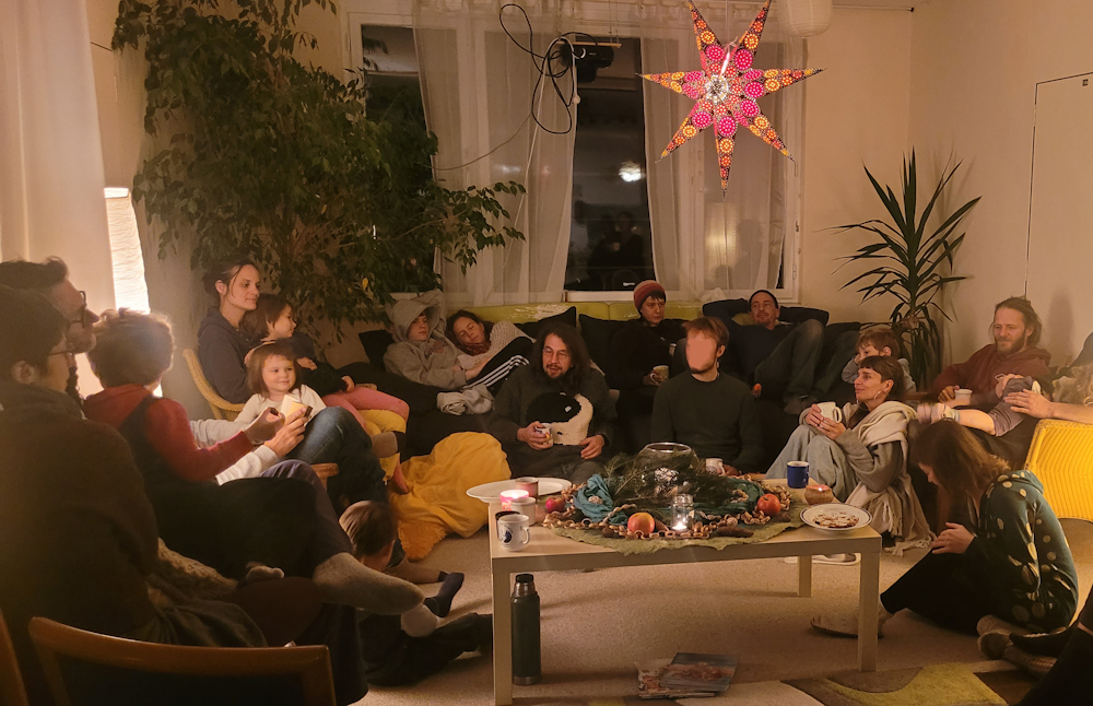Derzeit sind wir rund 50 Erwachsene mit 20 Kindern. Unsere Altersspanne verläuft über 0 bis 76 Jahre. So unterschiedlich unsere Berufe und Geschichten sind, haben wir eines gemeinsam: den Wunsch, eine Kultur des Miteinanders, getragen von Offenheit, Freiwilligkeit und Vertrauen, zu gestalten.